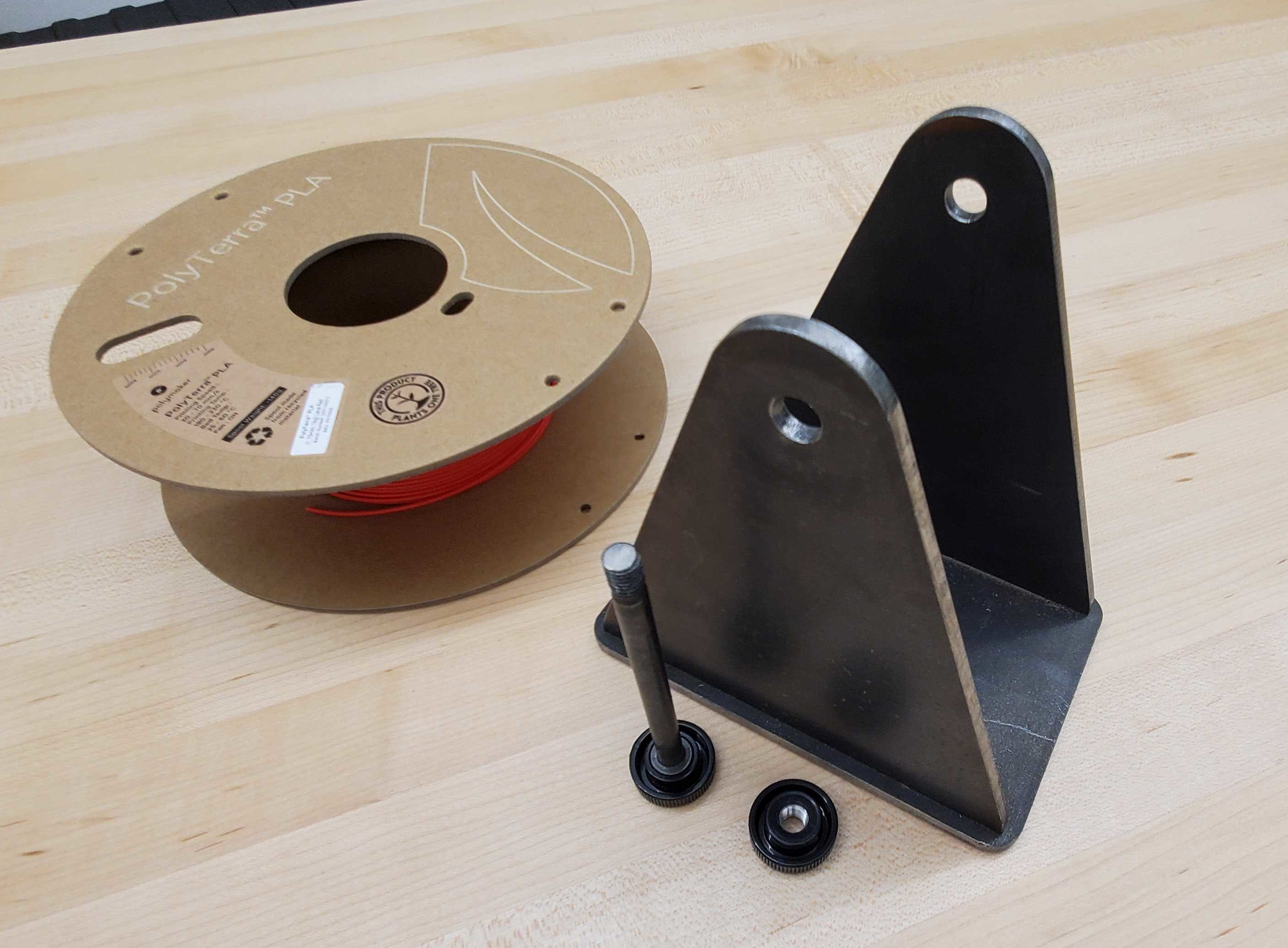 at {dayjob}, I ended up in charge of a small fleet of Dremel Desktop FDm 3D printers. These machines, by default, work with a proprietary size of filament spool with a built in RFID chip. I decided to switch to using a generic PLa filament to save on material costs and sourcing headaches. Unfortunately, the new style of spool didn’t fit into the built in compartment in the printers’ enclosure. To get around this problem, I designed and build a set of spool-holders.