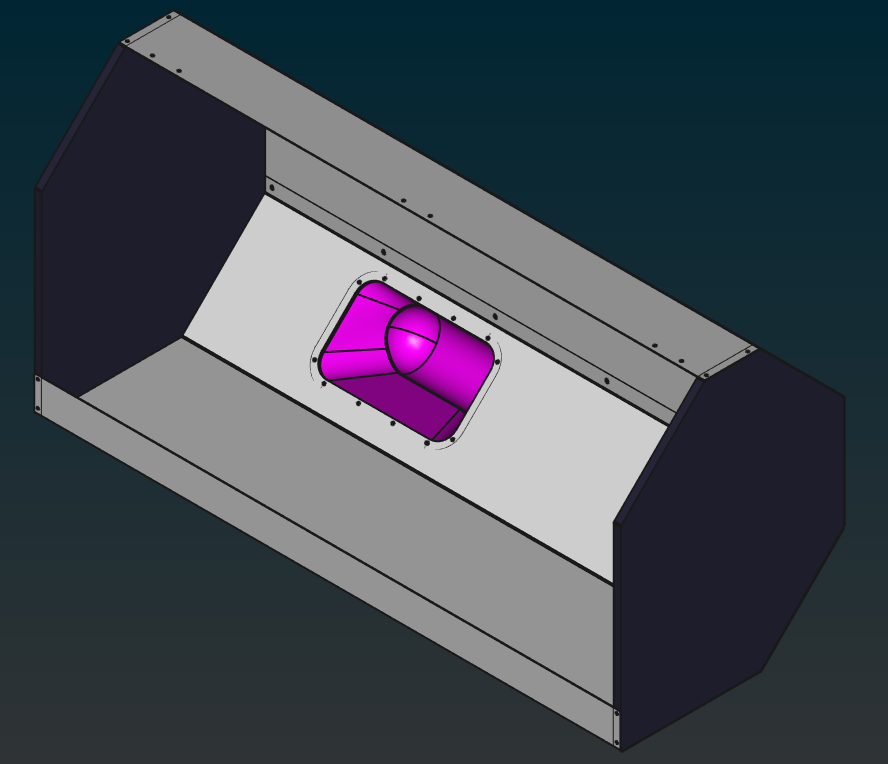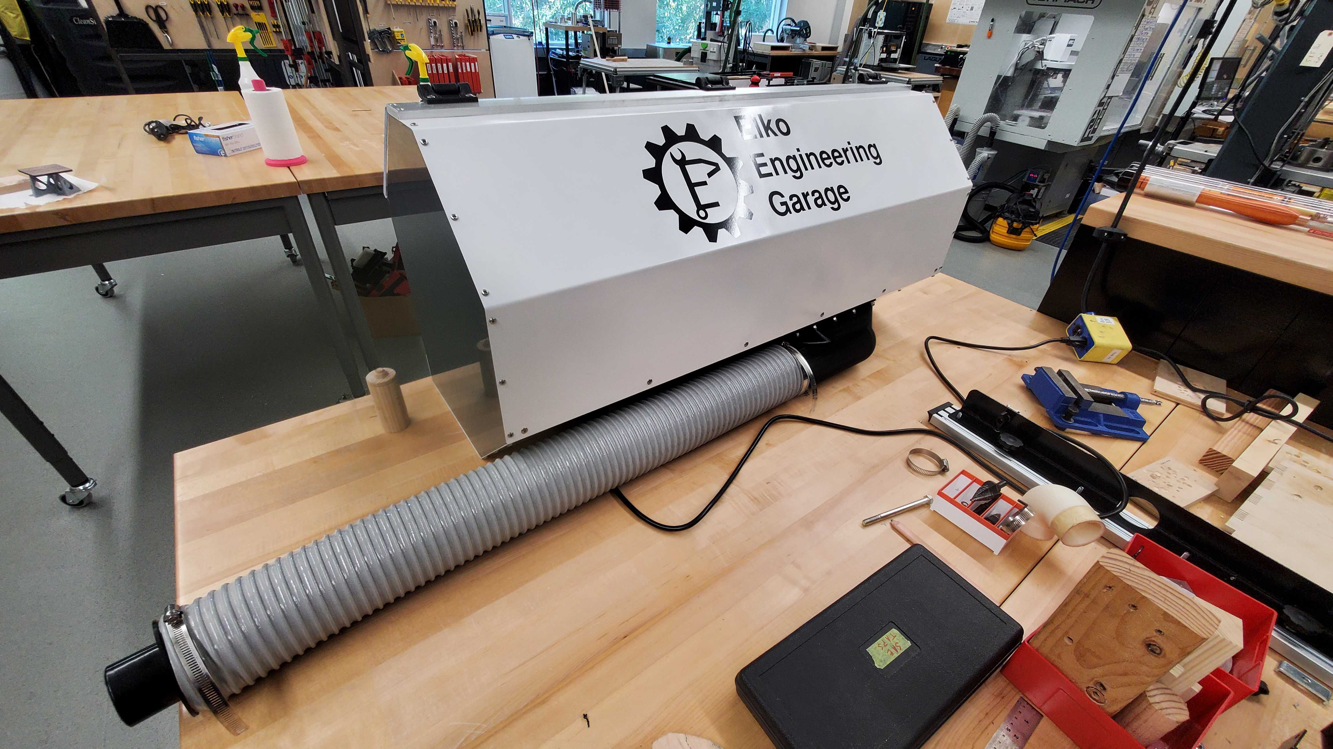 The metal parts were cut to size using a fiber laser, then folded with a large pneumatic press brake. I had the PVC side panels cut to size with a waterjet cutter. The front shielding panel is made of 3/8” thick polycarbonate sheet, waterjet cut and mounted with three friction hinges.