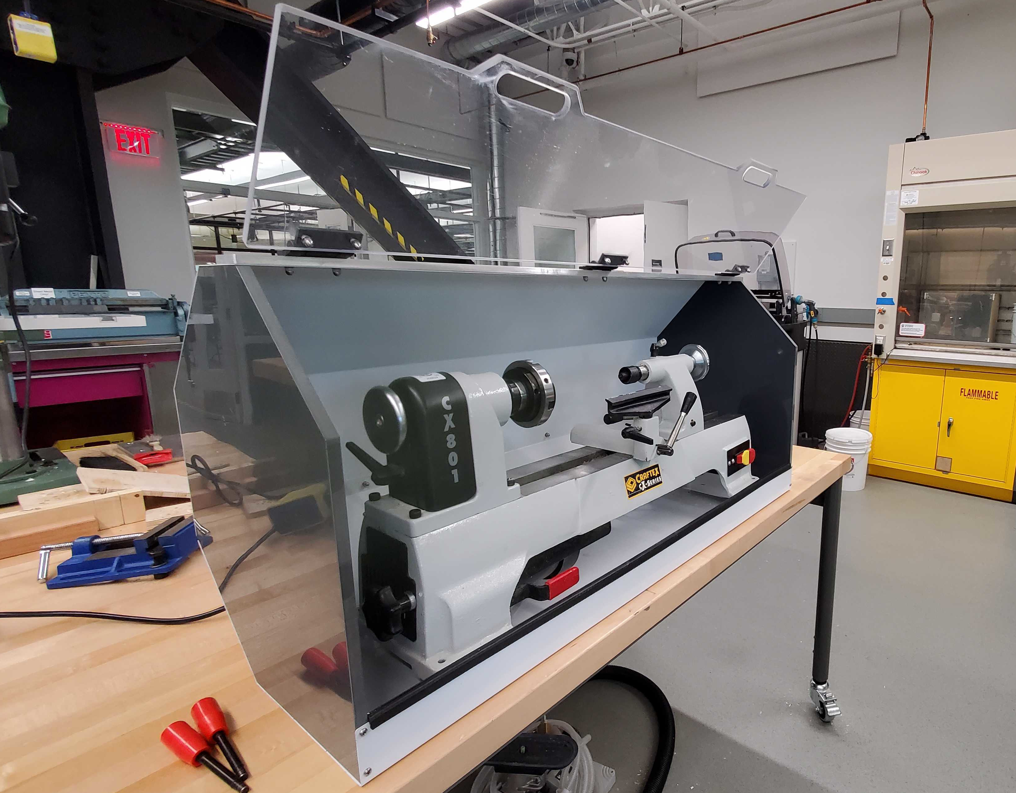 Here’s another project I worked on while at my last internship at my universitys’ makerspace. It’s an enclosure for a Craftex wood lathe, made of 1/2” PVC sheet and 20Ga sheet steel.