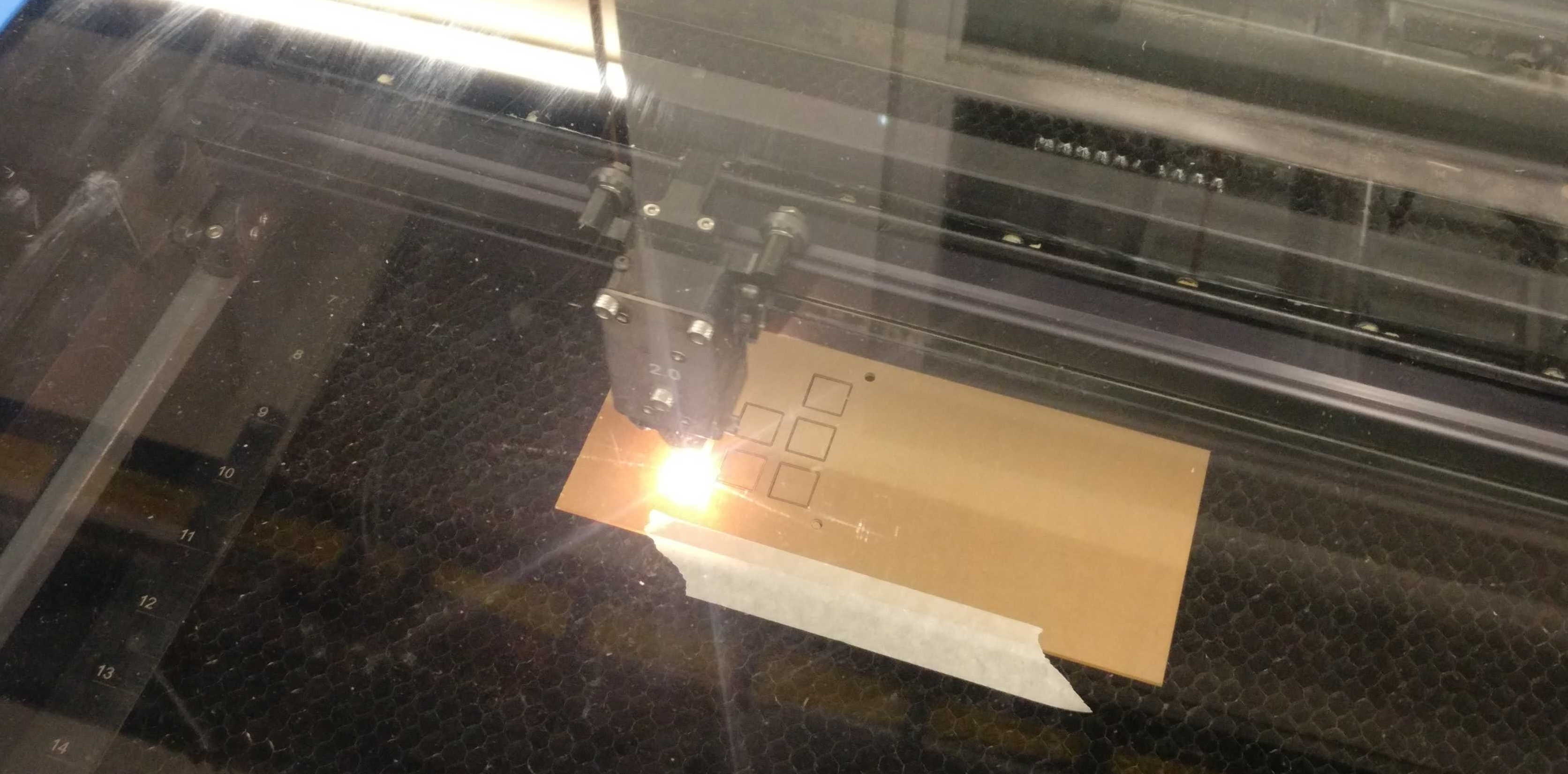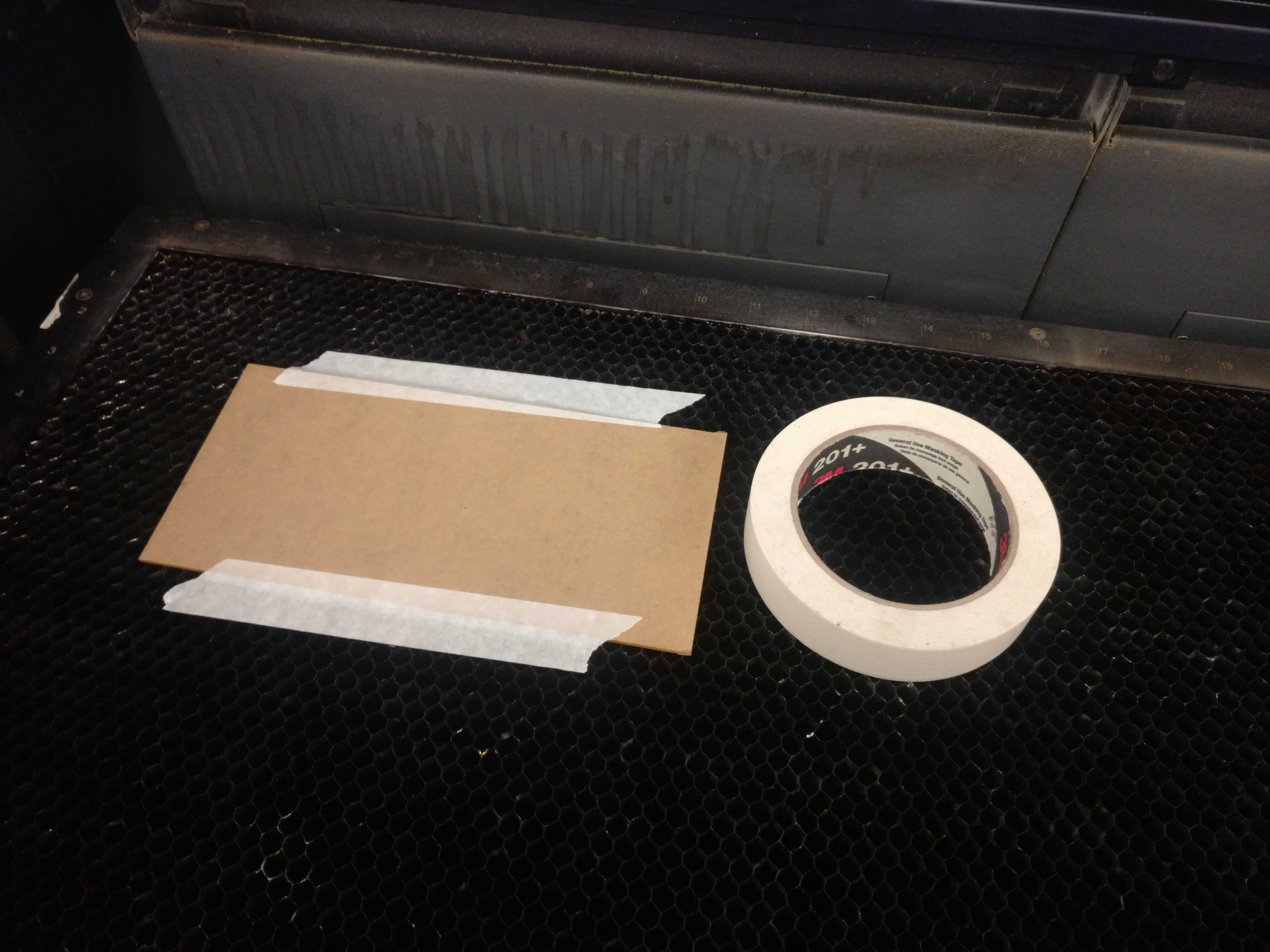 Open the UCP laser control software and home the machine if needed. You’ll also need to set up your piece of stock inside the laser cutter. a 100x200mm sheet of acrylic is included with every project kit, so there’s enough space for a second attempt if you get the settings wrong the first time. Use a bit of masking tape along the edges of the sheet to ensure that it doesn’t shift during the cutting operation.